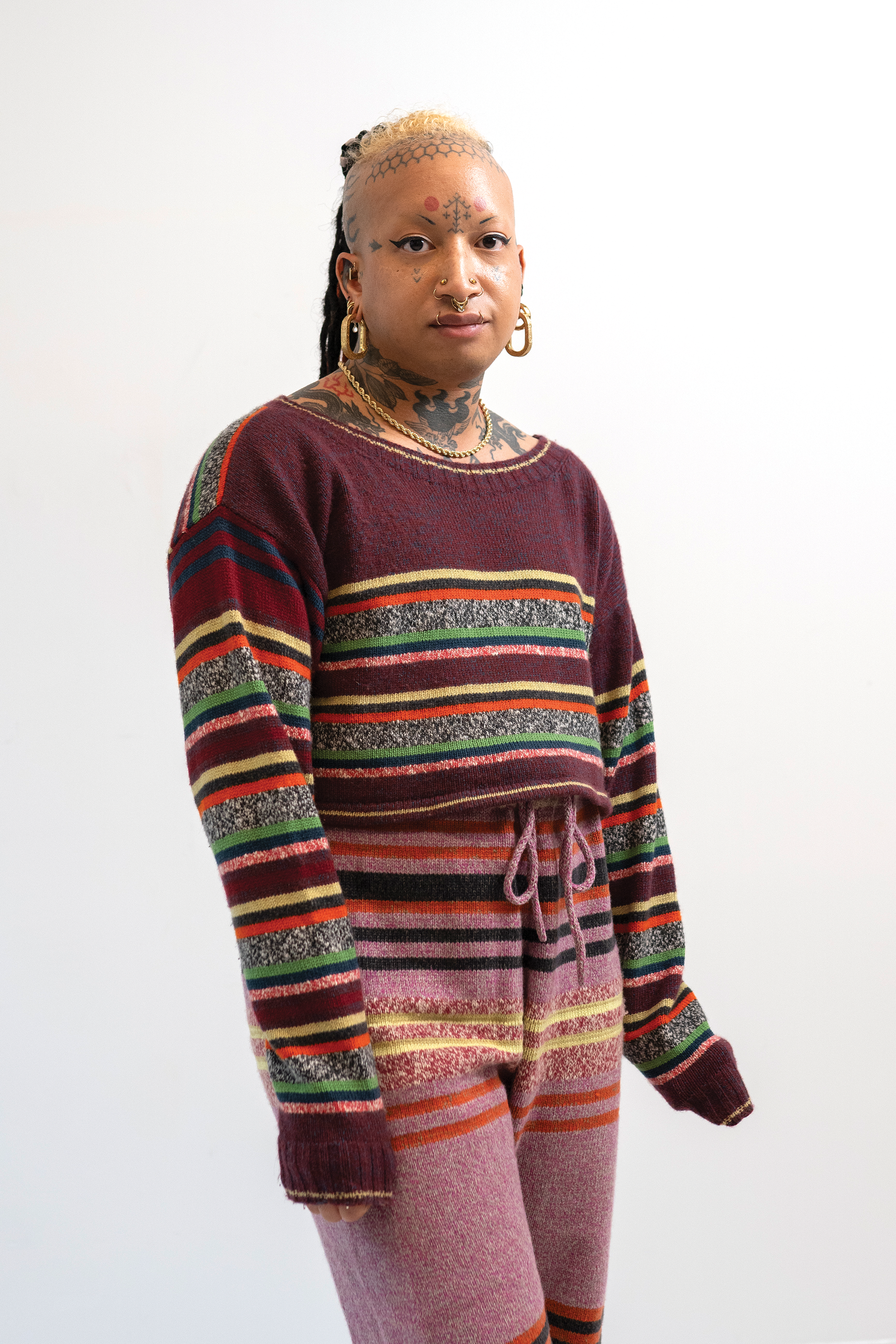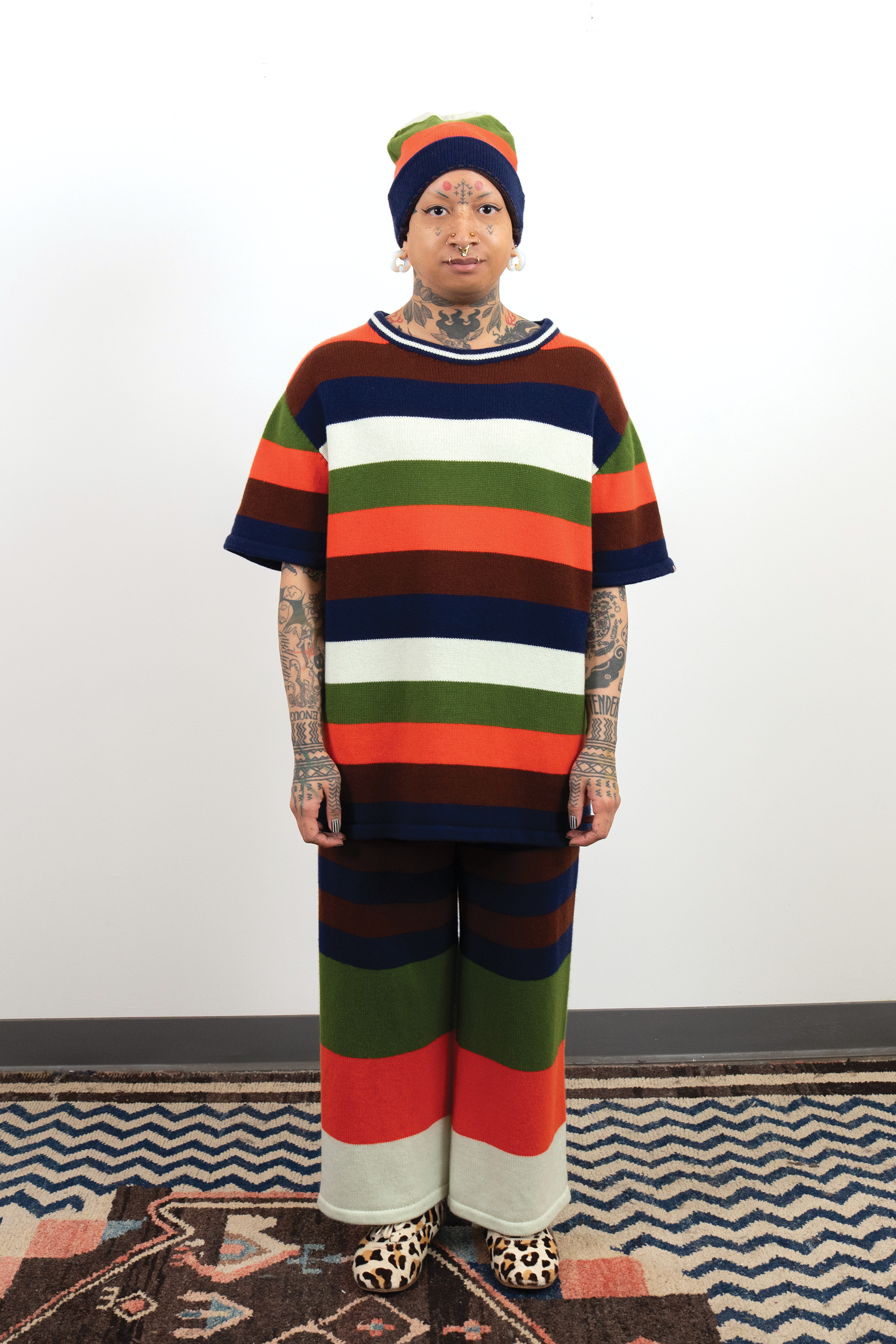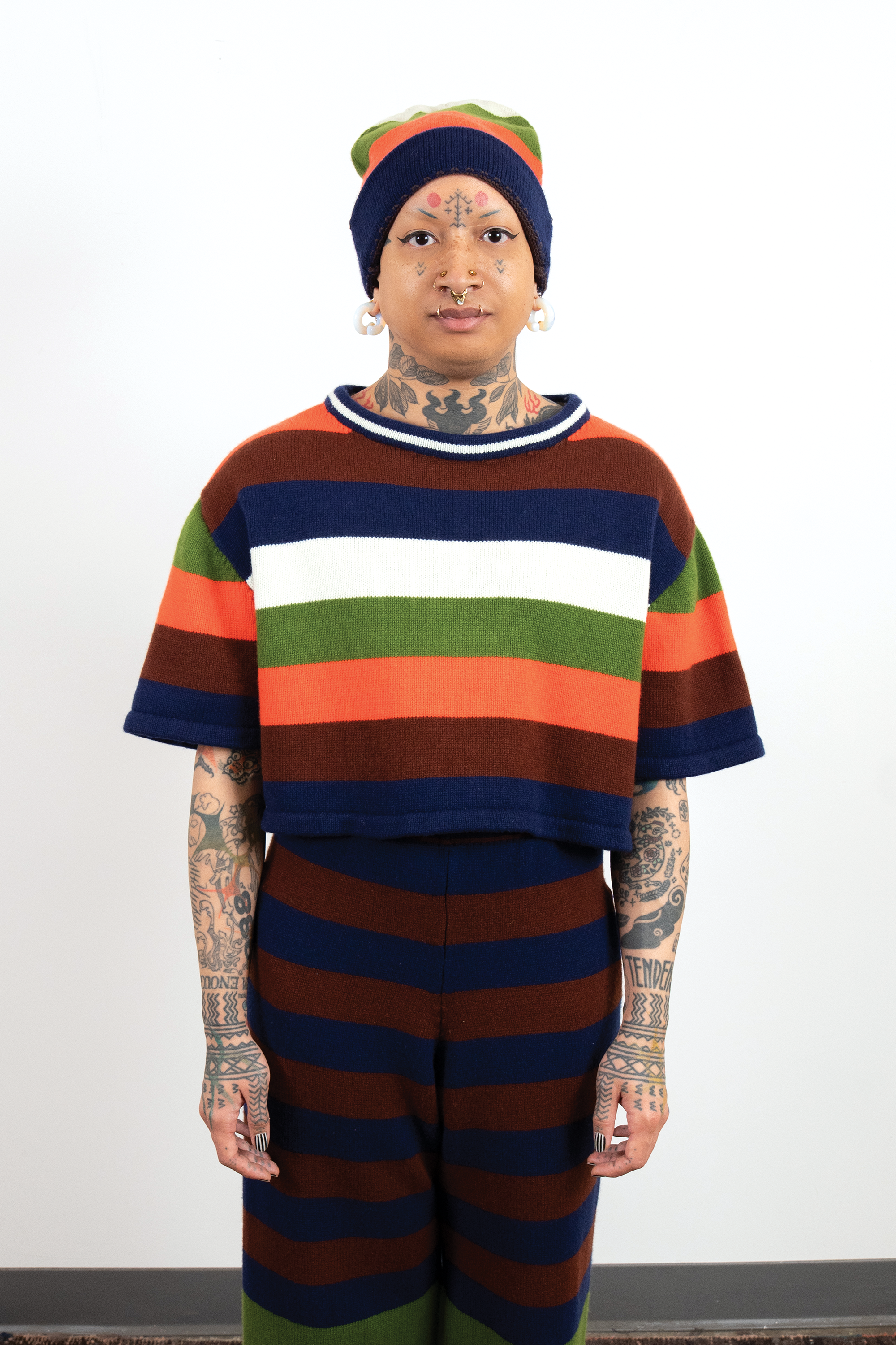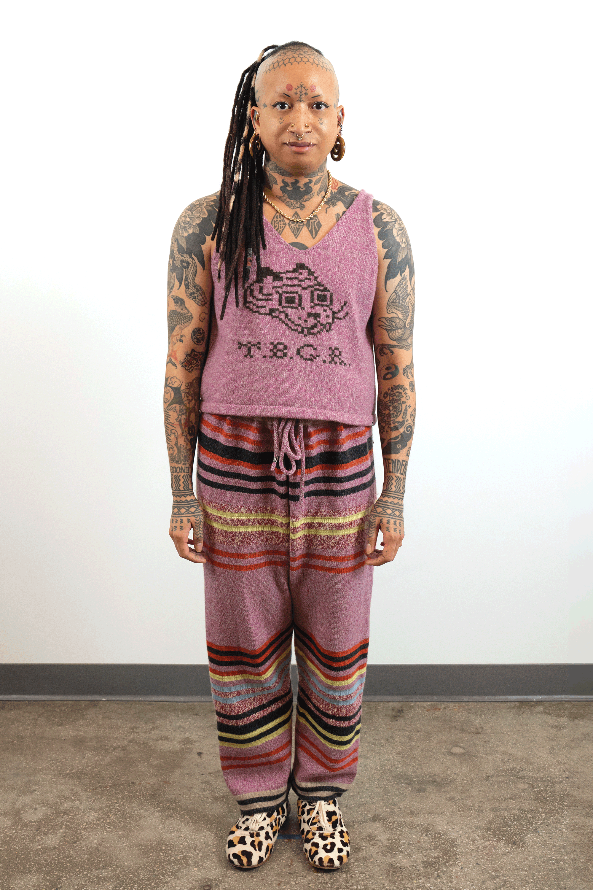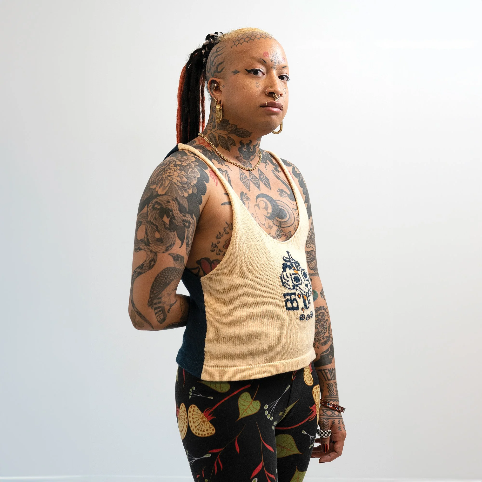 Check out this blog post for more context & background about the work.INTARSIACORE - My current body of work with the intarsia color work technique.GRID INPUTS - A detailed description of the invisible charts necessary to construct the artwork.FASHION - Information about the made-to-order fashion line produced by Tailored Industry.VISUAL LANGUAGE - A mostly complete description and history about the style of the artwork.DESIGN & PROCESS: Review the PROCESS: MACHINE KNITTING section of this page for a behind-the-scenes look.2025