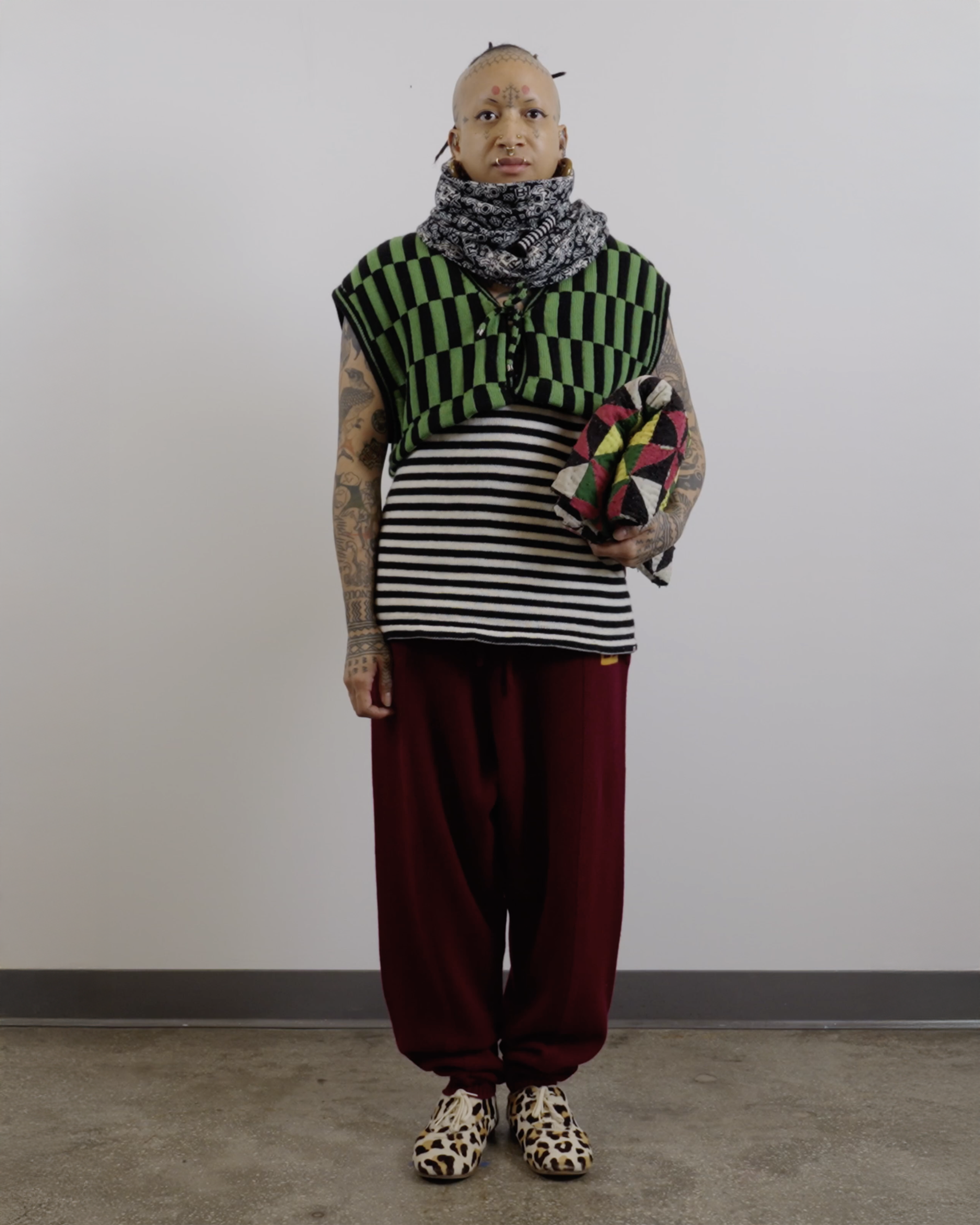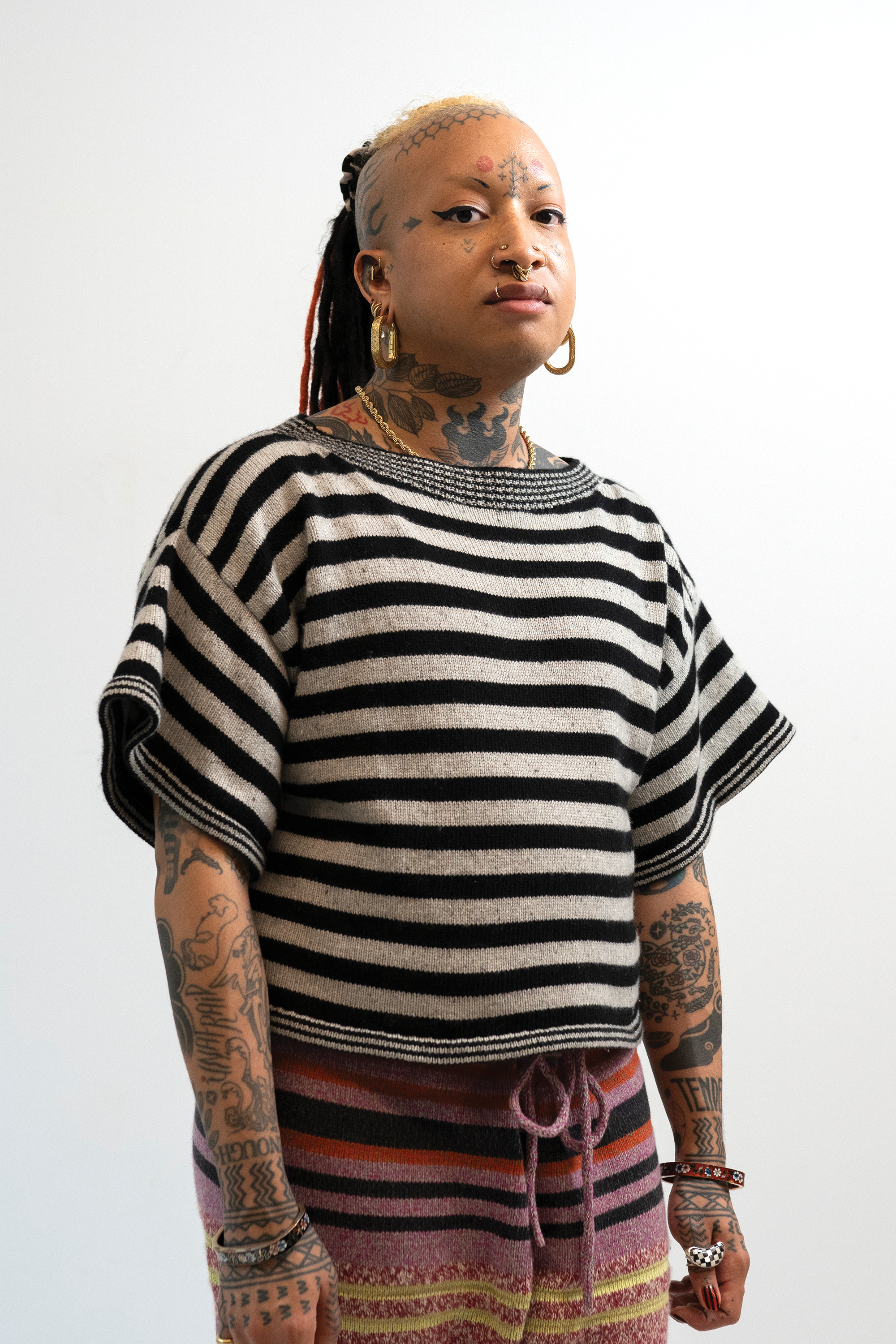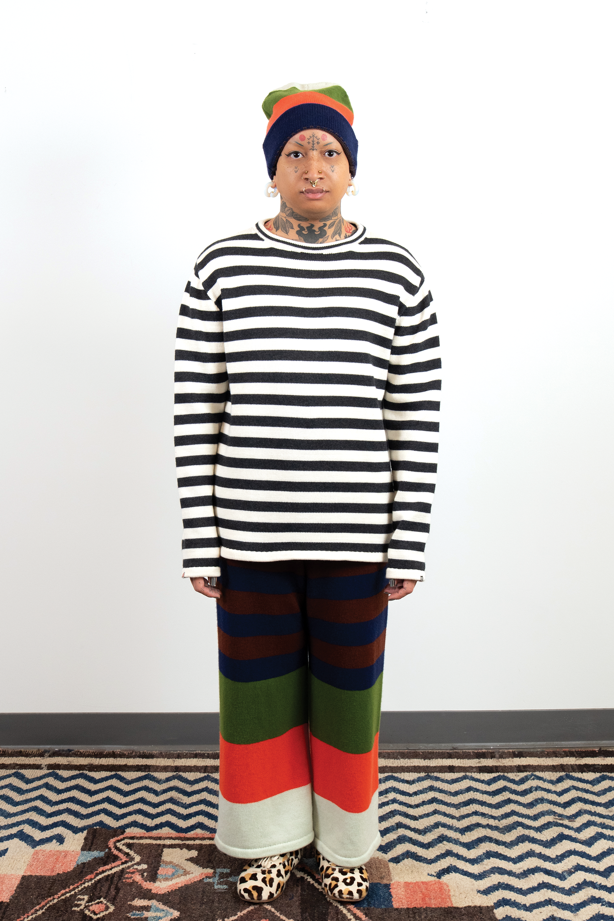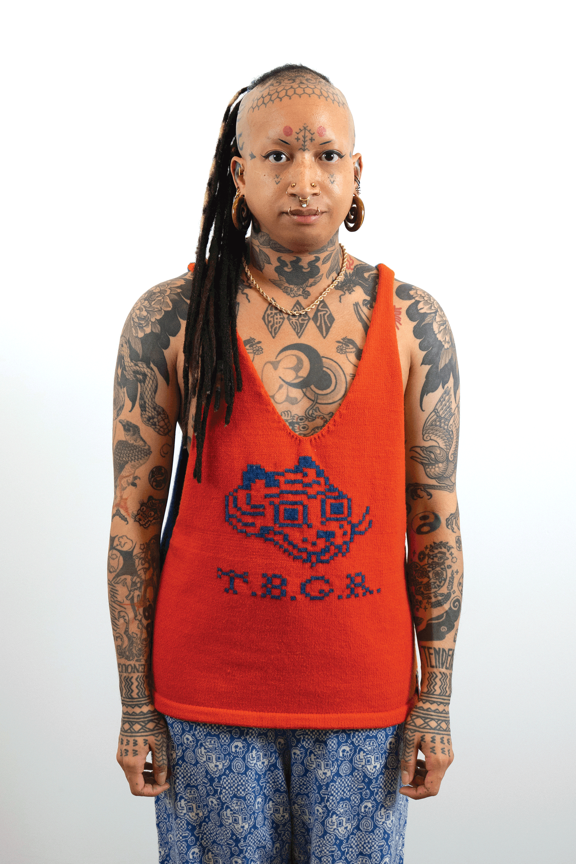 Check out this blog post for more context & background about the work.INTARSIACORE - My current body of work with the intarsia color work technique.GRID INPUTS - A detailed description of the invisible charts necessary to construct the artwork.FASHION - Information about the made-to-order fashion line produced by Tailored Industry.VISUAL LANGUAGE - A mostly complete description and history about the style of the artwork.DESIGN & PROCESS: Review the PROCESS: MACHINE KNITTING section of this page for a behind-the-scenes look.2025