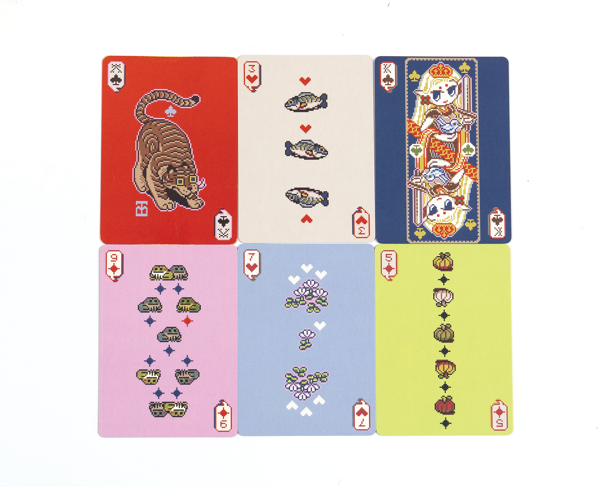 Tigerbob Playing Cards consists of 216 pixel illustrations showing my artistic interpretation of the common French-suited playing cards. 54 individual designs are used in four decks, or colorways. The designs are composed of the 52 standard playing cards, one joker, and one card back.The card illustrations were designed first in two colors (monochrome) so that each element could also be properly knitted on Gossamer's knitting machines.This project was released as an NFT (digital collectible) project in collaboration with OpenSea. View the collection here.About the Art